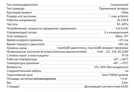 Электропривод противопожарного клапана BVM для автоматизации процесса удаления дыма из системы вентиляции. Обязательным элементом принудительной вентиляции во всех административных, промышленных и жилых зданиях является противопожарный клапан, главная задача которого - предотвращение распространения продуктов горения по помещениям, а также удаление дыма и газа с места возникновения возгорания. Для автоматизации системы дымоудаления в него устанавливают электропривод противопожарного клапана. Для установки на огнезадерживающие клапаны применяются электрические приводы серии BLF. Возвратная пружина, присутствующая на электроприводе, самостоятельно закрывает огнезадерживающий затвор, в случае прекращения подачи питания. Концевые выключатели подают сигнал о крайнем положении лопатки на систему автоматики. Такие устройства предназначены для работы с нормально открытыми противопожарными клапанами и воздушными заслонками с квадратной осью 12 мм. Имеют запас прочности крутящего момента не менее 5%. Технические характеристики: BLF230-05: BLF230-10: BLF230-15: Для увеличения кликните на фото.