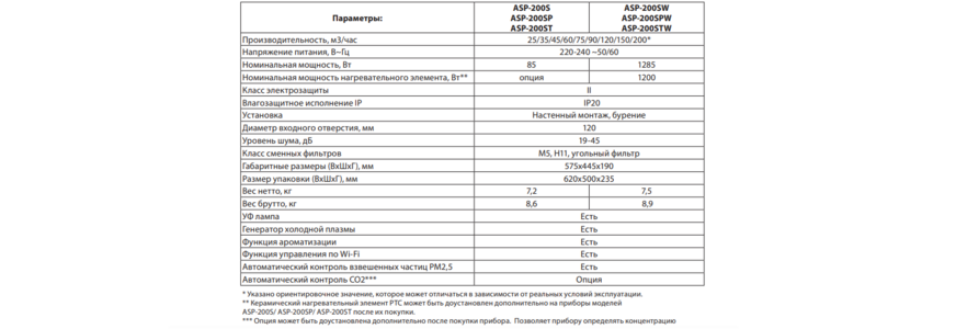 Технические характеристики ASP-200S Для увеличения кликните на изображение